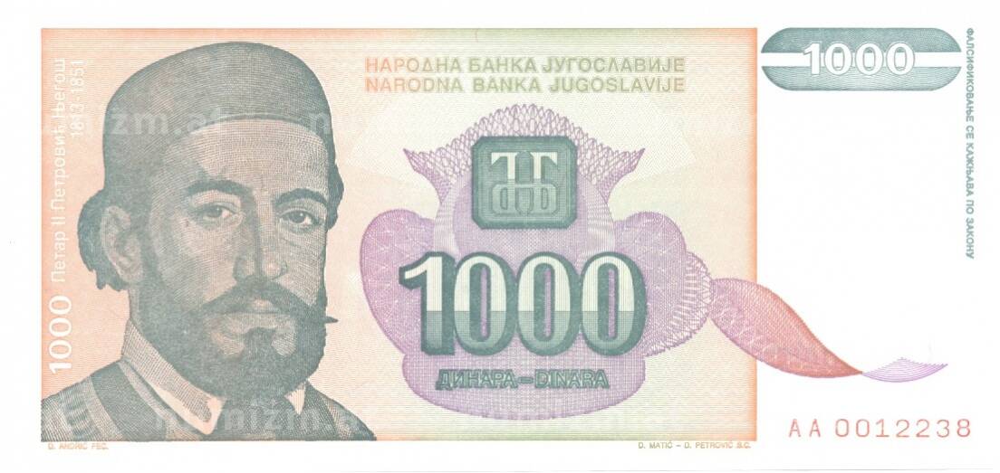 20.01.2025Интернет магазин «Нумизмат» предлагает приобрести 1000 динаров 1994 года.