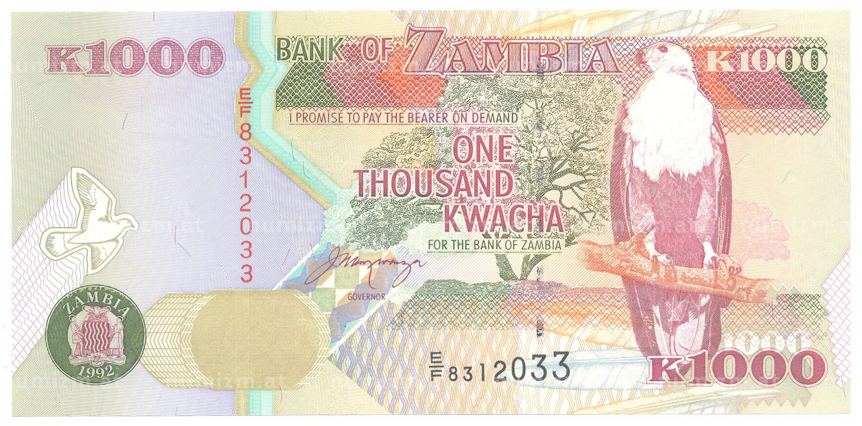 20.01.2025Интернет магазин «Нумизмат» предлагает приобрести 1000 квача 1992 года Замбия.