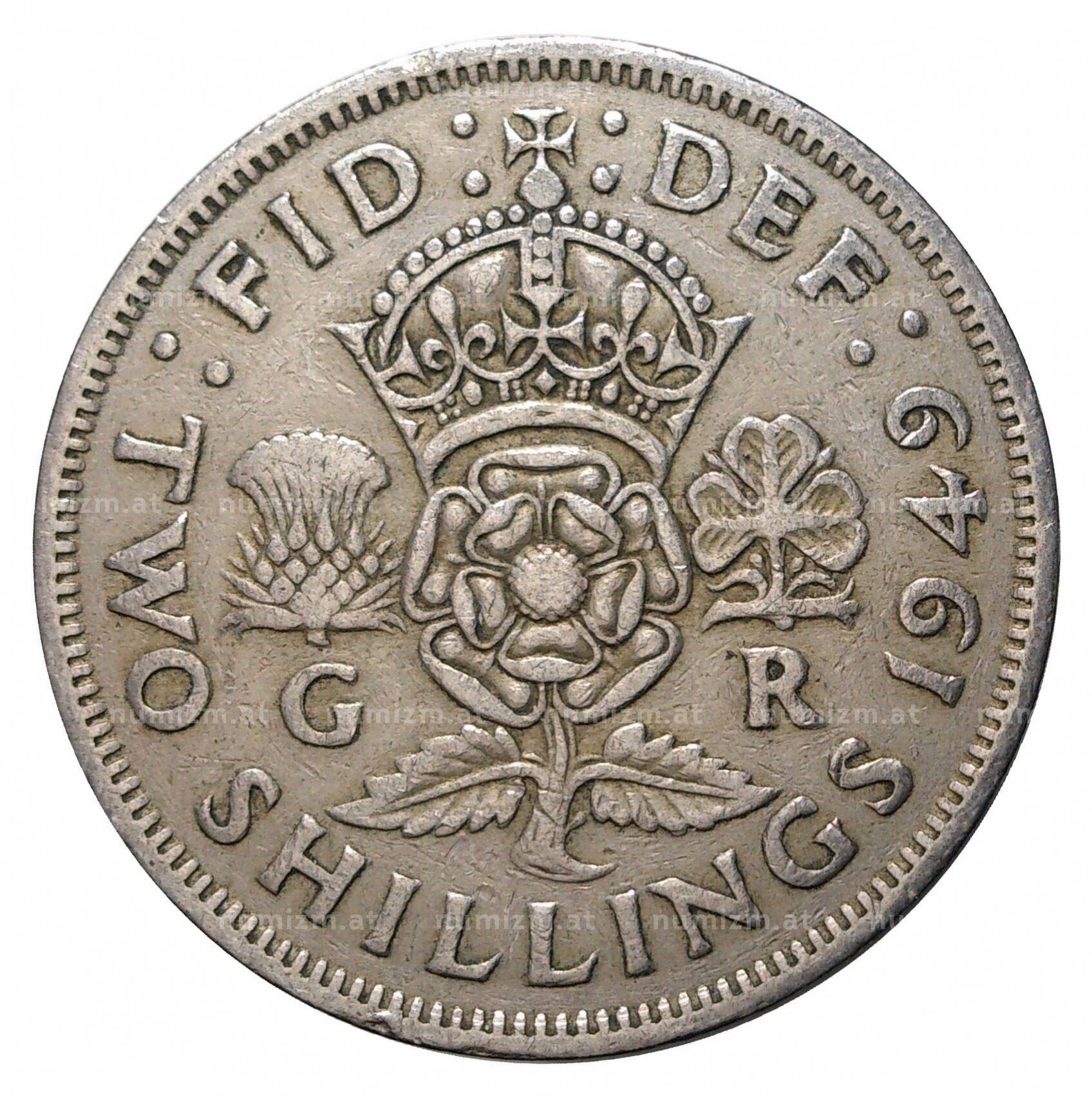 20.01.2025Интернет магазин «Нумизмат» предлагает приобрести 2 шиллинга 1949 года.