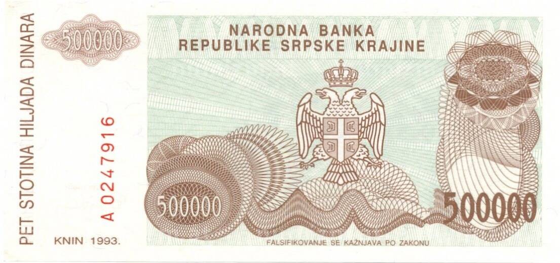 20.01.2025Интернет магазин «Нумизмат» предлагает приобрести 500000 динаров 1993 года.
