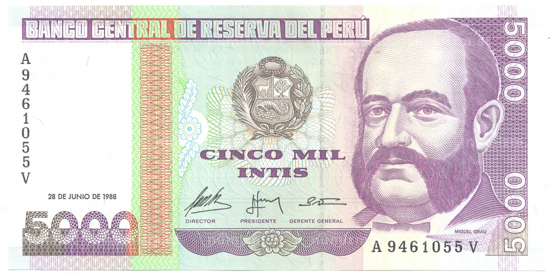 20.01.2025Интернет магазин «Нумизмат» предлагает приобрести 5000 инти 1988 года Перу.