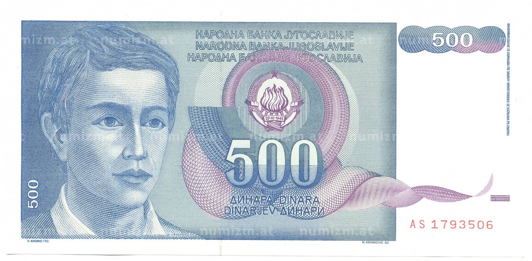 Номинал: 500 динаров