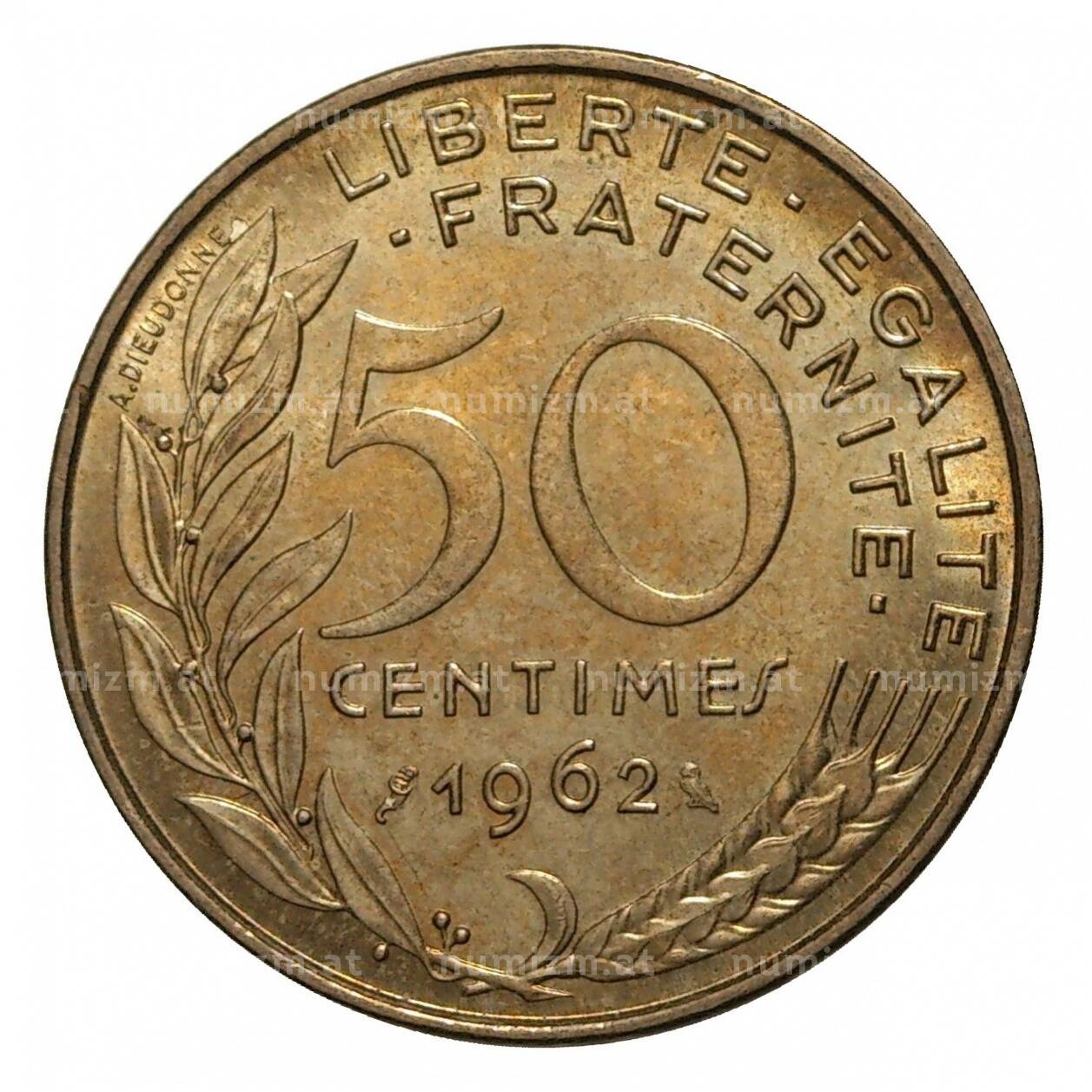 20.01.2025Интернет магазин «Нумизмат» предлагает приобрести 50 сантимов 1962 года.