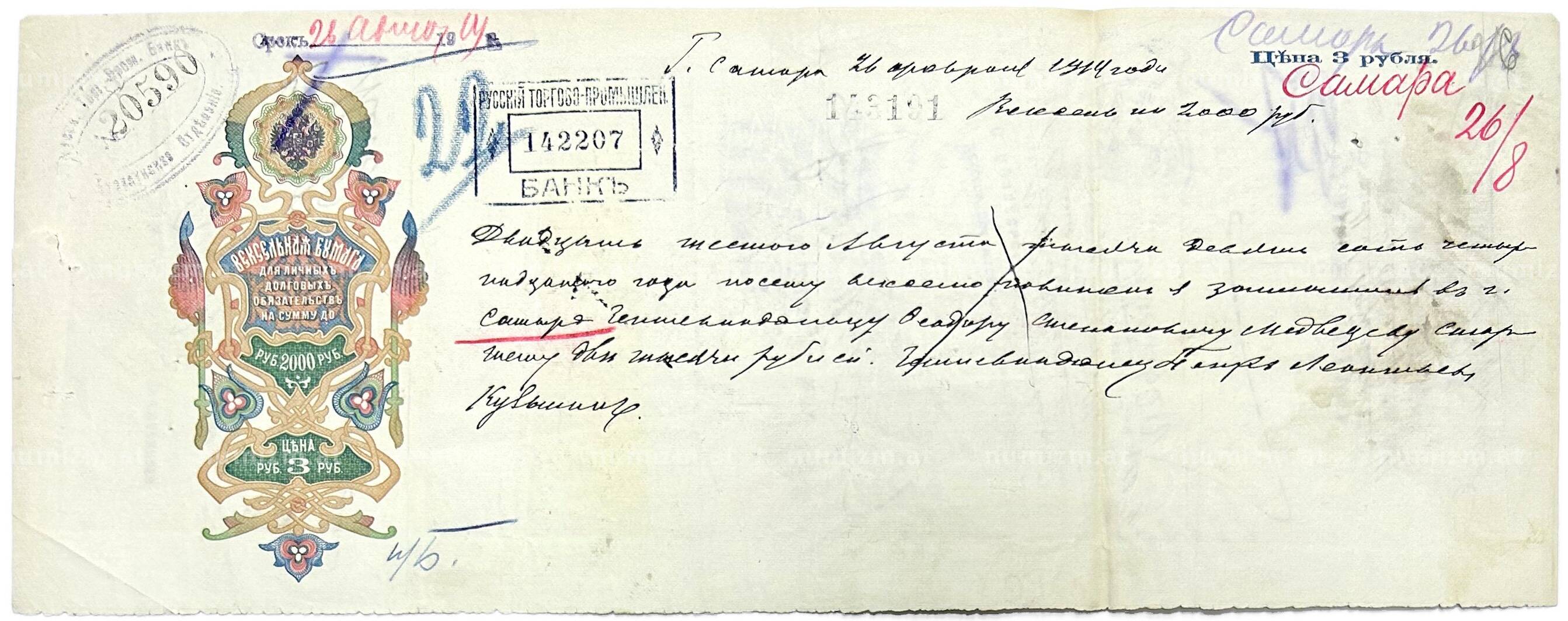 Купить Вексель 1914 года на сумму 2000 рублей Российская Империя (Самара) по привлекательной цене можно в нашем интернет-магазине — Вам достаточно оформить заказ на сайте. Все монеты, представленные в каталоге, находятся в наличии на нашем складе.
