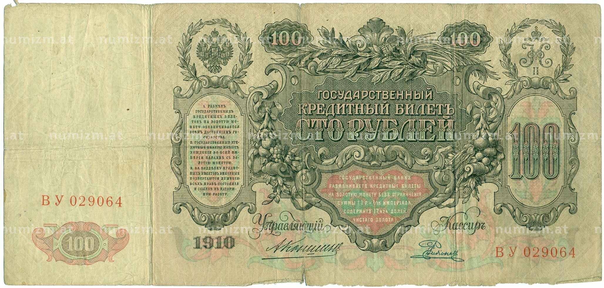Купить 100 рублей 1910 года Коншин / Родионов по привлекательной цене можно в нашем интернет-магазине — Вам достаточно оформить заказ на сайте. Все монеты, представленные в каталоге, находятся в наличии на нашем складе.