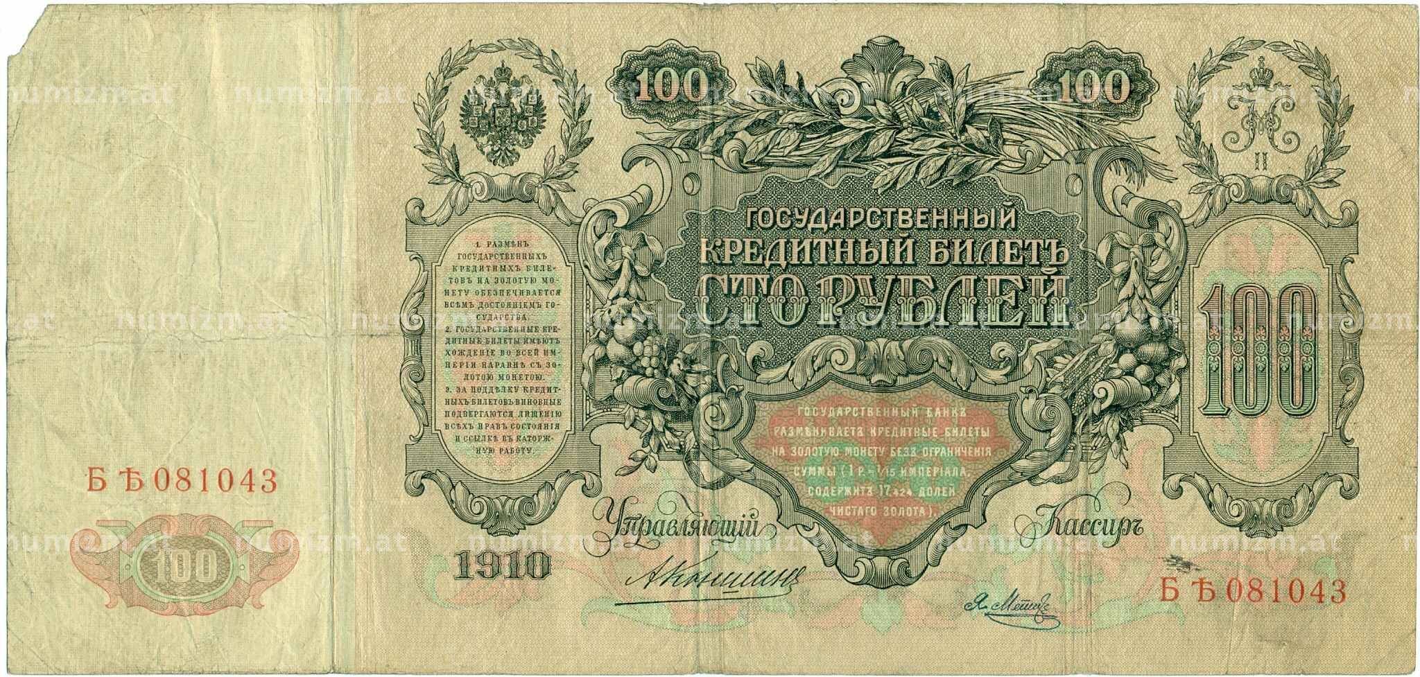 Банкнота 100 рублей 1910 года Коншин / Метц (Артикул: B1-11882): подробные характеристики, качественные фотографии в высоком разрешении, низкая цена.
