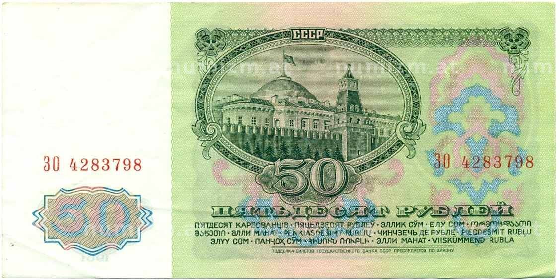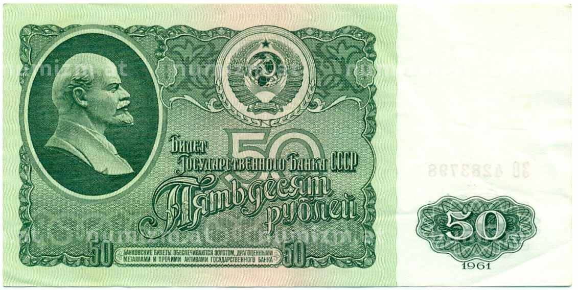 • Банкнота 50 рублей 1961 года (Артикул: B1-11997) — Фото №1 Банкнота 50 рублей 1961 года (Артикул: B1-11997) — Фото №2