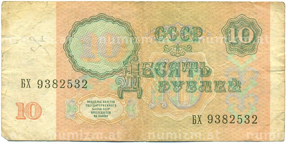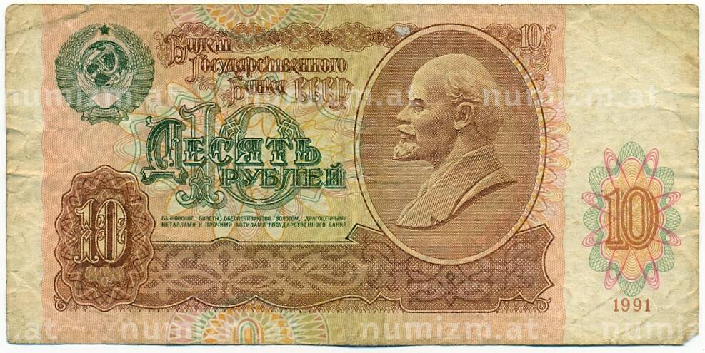 • Банкнота 10 рублей 1991 года (Артикул: B1-12421) — Фото №1 Банкнота 10 рублей 1991 года (Артикул: B1-12421) — Фото №2
