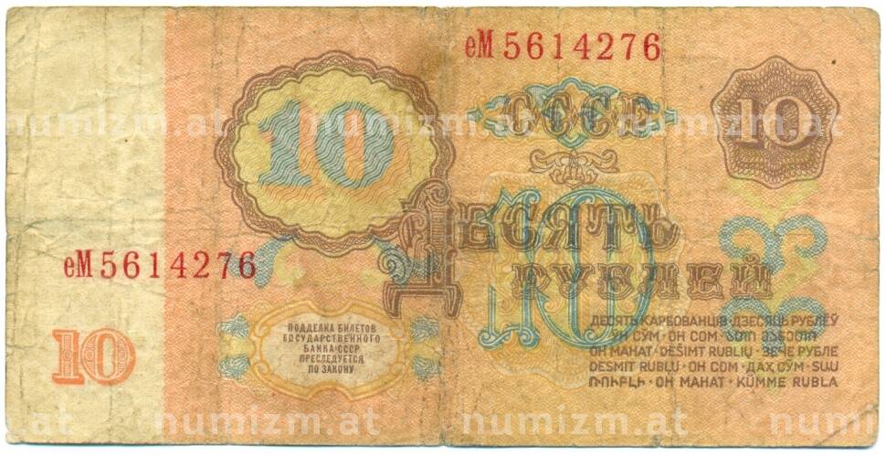 • Банкнота 10 рублей 1961 года (Артикул: B1-12425) — Фото №1 Банкнота 10 рублей 1961 года (Артикул: B1-12425) — Фото №2
