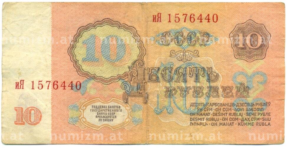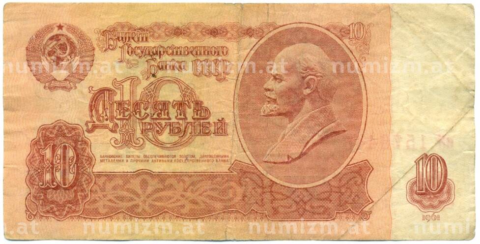 • Банкнота 10 рублей 1961 года (Артикул: B1-12428) — Фото №1 Банкнота 10 рублей 1961 года (Артикул: B1-12428) — Фото №2