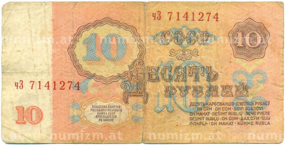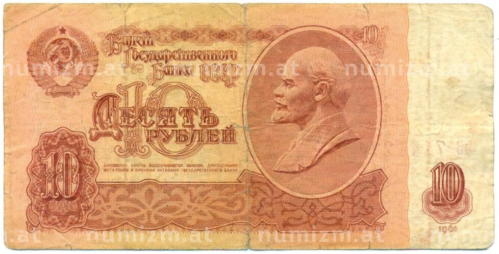 • Банкнота 10 рублей 1961 года (Артикул: B1-12431) — Фото №1 Банкнота 10 рублей 1961 года (Артикул: B1-12431) — Фото №2