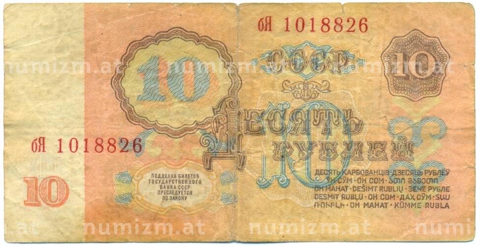 Банкнота 10 рублей 1961 года (Артикул: B1-12436): подробные характеристики, качественные фотографии в высоком разрешении, низкая цена.
