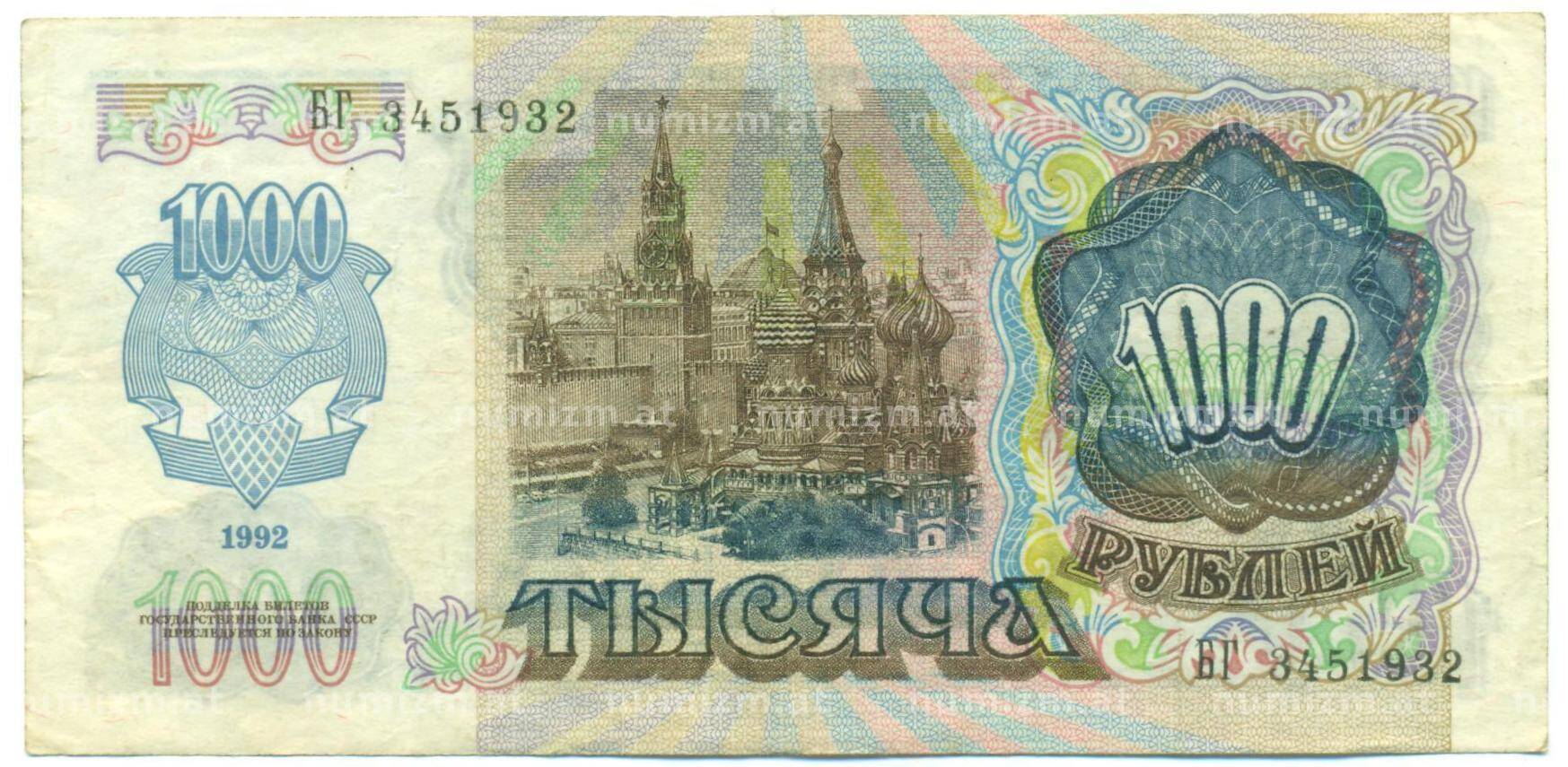 Банкнота 1000 рублей 1992 года (Артикул: B1-12441): подробные характеристики, качественные фотографии в высоком разрешении, низкая цена.