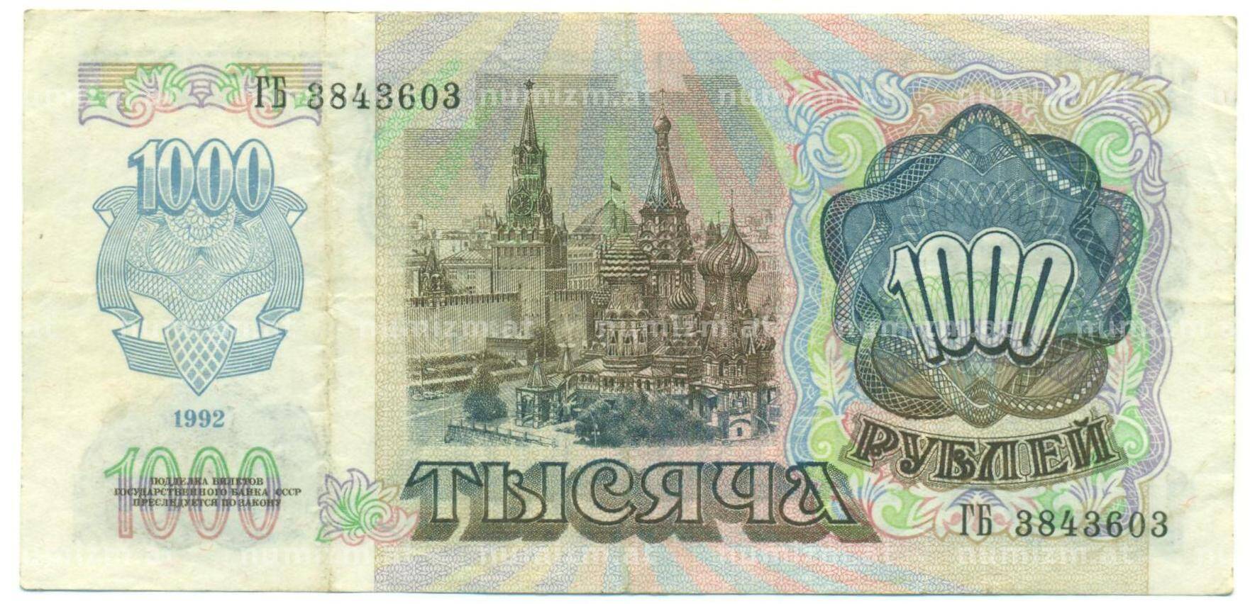 Банкнота 1000 рублей 1992 года (Артикул: B1-12443): подробные характеристики, качественные фотографии в высоком разрешении, низкая цена.