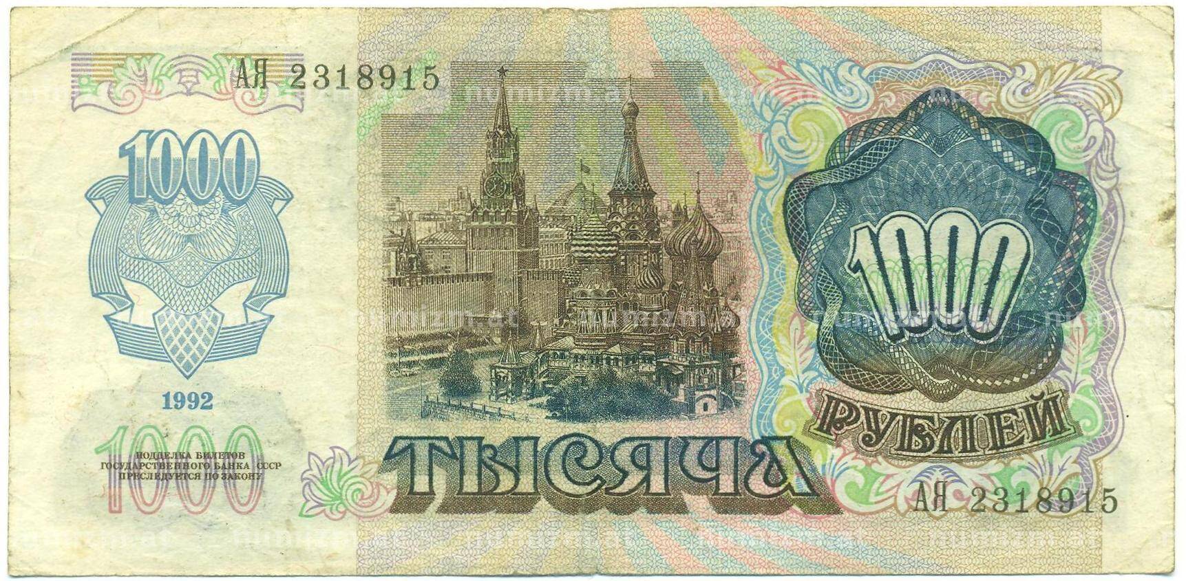 Банкнота 1000 рублей 1992 года (Артикул: B1-12449): подробные характеристики, качественные фотографии в высоком разрешении, низкая цена.