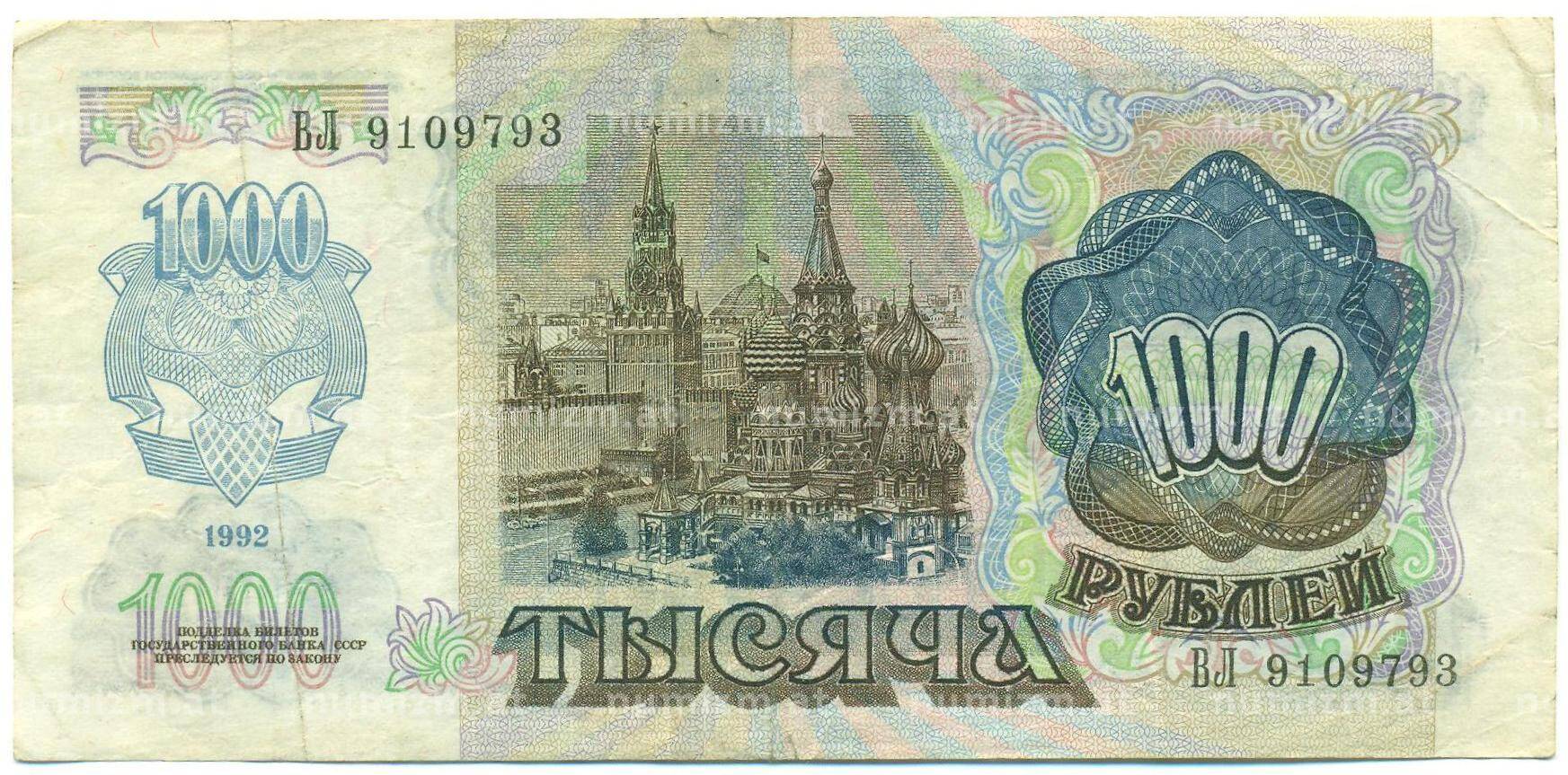 Банкнота 1000 рублей 1992 года (Артикул: B1-12454): подробные характеристики, качественные фотографии в высоком разрешении, низкая цена.