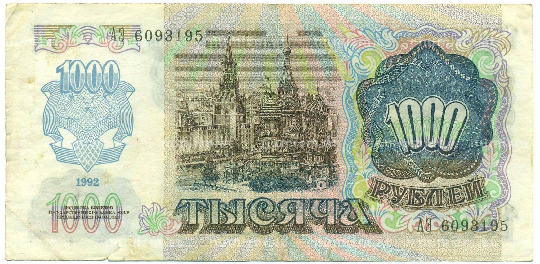 Банкнота 1000 рублей 1992 года (Артикул: B1-12455): подробные характеристики, качественные фотографии в высоком разрешении, низкая цена.