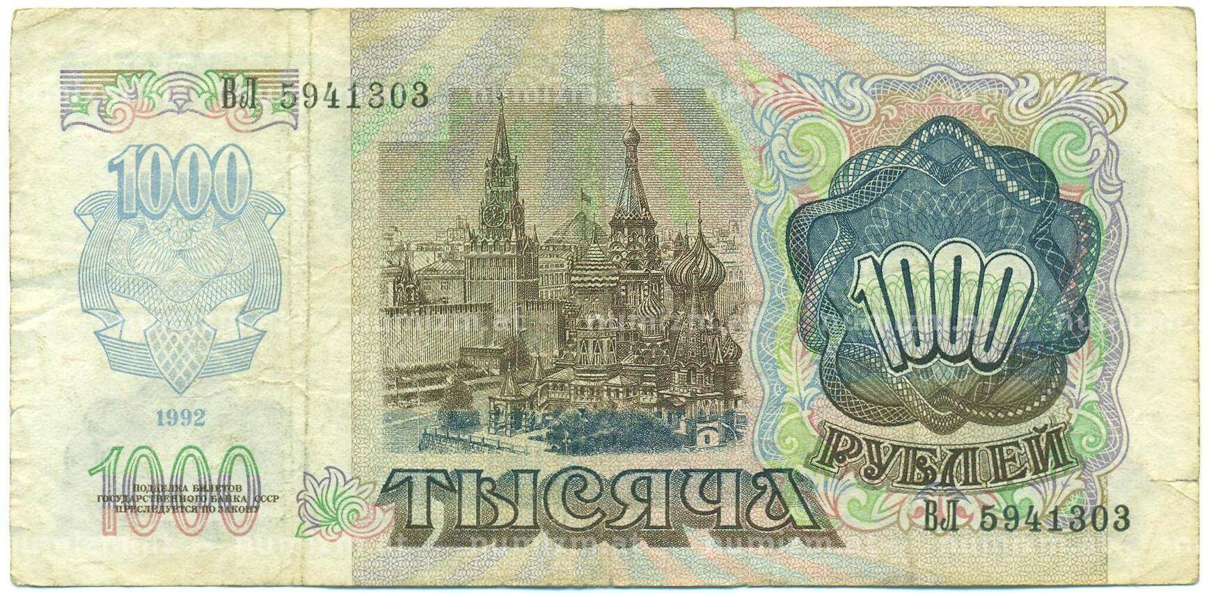 Банкнота 1000 рублей 1992 года (Артикул: B1-12457): подробные характеристики, качественные фотографии в высоком разрешении, низкая цена.