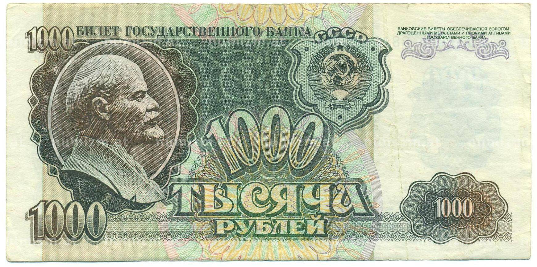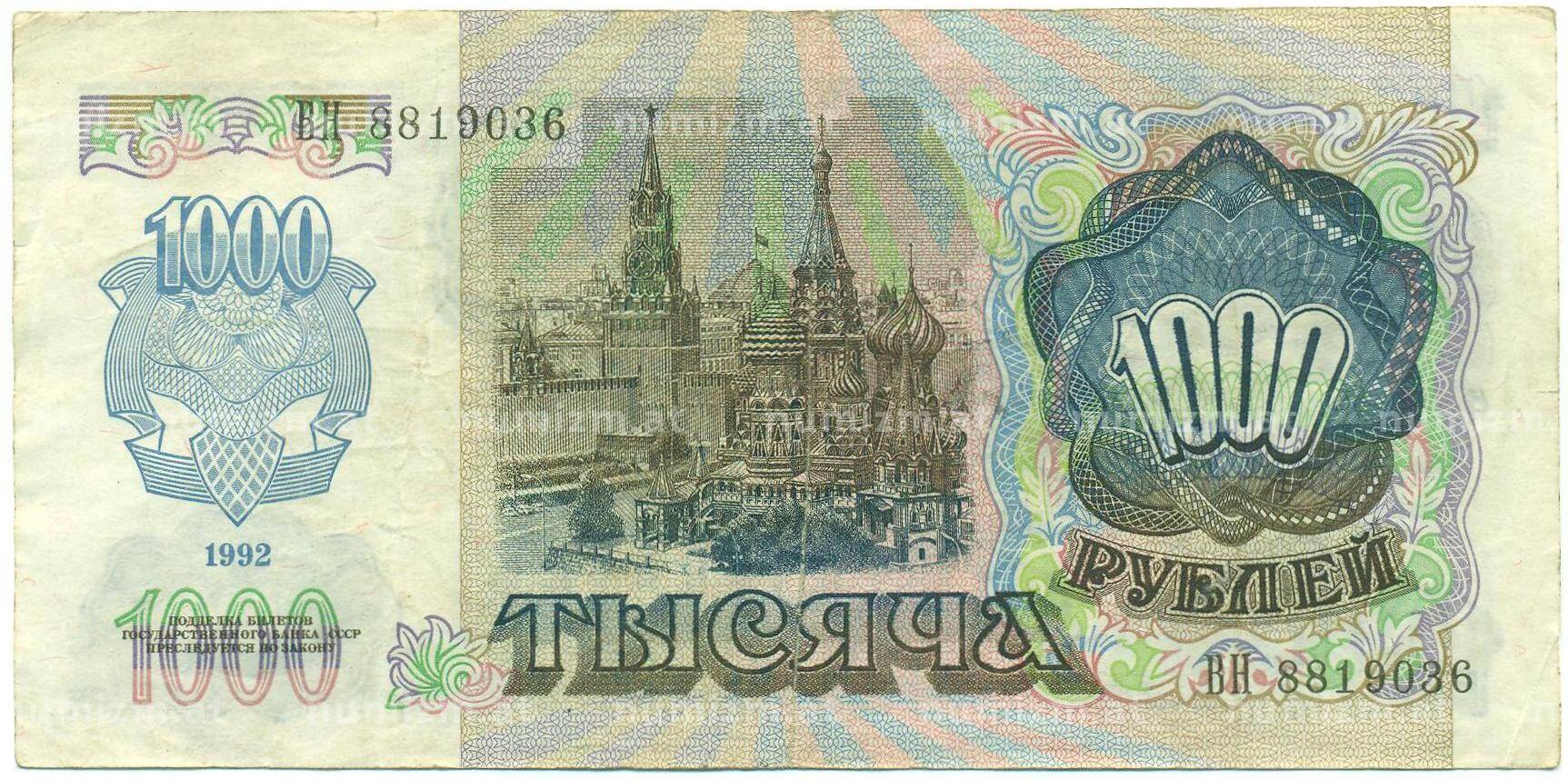 Банкнота 1000 рублей 1992 года (Артикул: B1-12458): подробные характеристики, качественные фотографии в высоком разрешении, низкая цена.