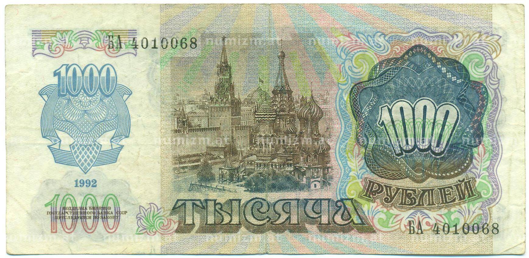 Банкнота 1000 рублей 1992 года (Артикул: B1-12459): подробные характеристики, качественные фотографии в высоком разрешении, низкая цена.