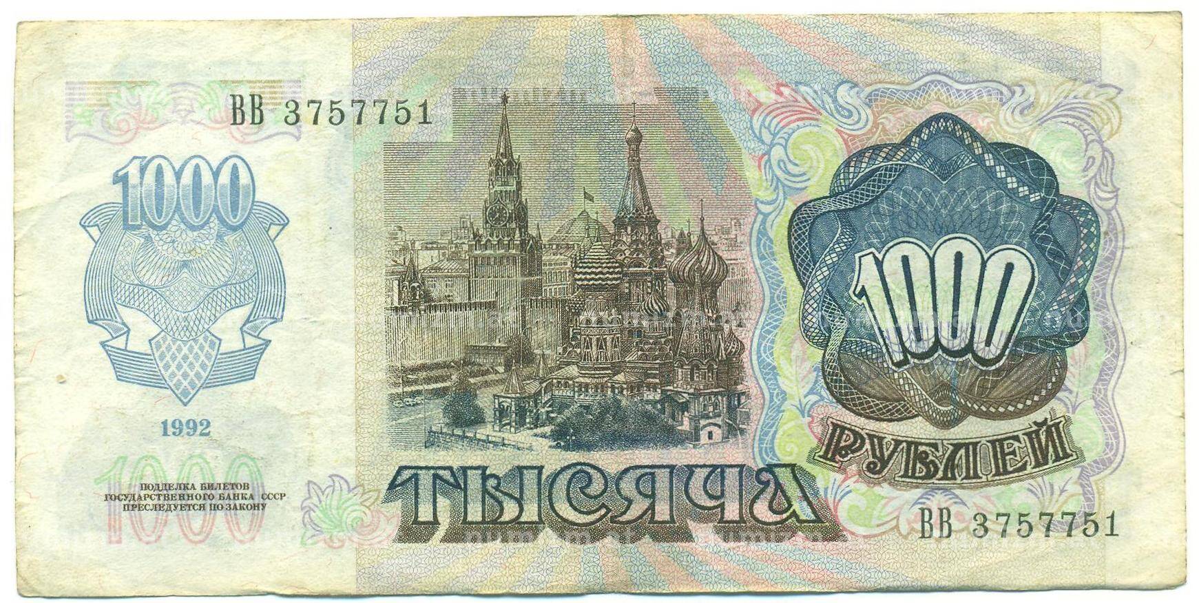 Банкнота 1000 рублей 1992 года (Артикул: B1-12475): подробные характеристики, качественные фотографии в высоком разрешении, низкая цена.