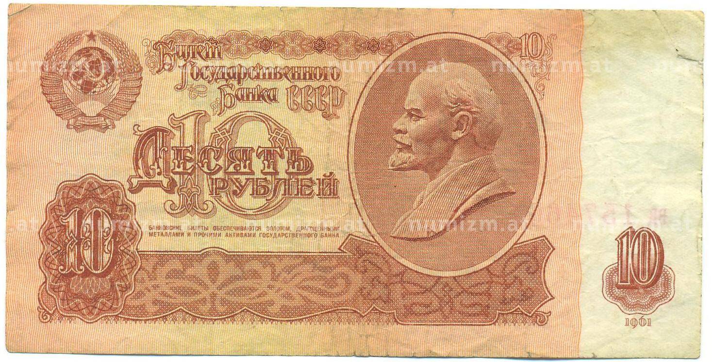 Банкнота 10 рублей 1961 года (Артикул: B1-12498): подробные характеристики, качественные фотографии в высоком разрешении, низкая цена.