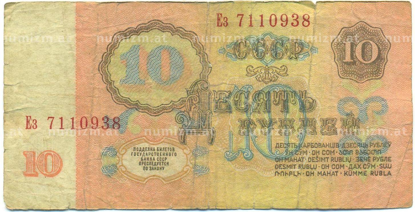 Банкнота 10 рублей 1961 года (Артикул: B1-12499): подробные характеристики, качественные фотографии в высоком разрешении, низкая цена.