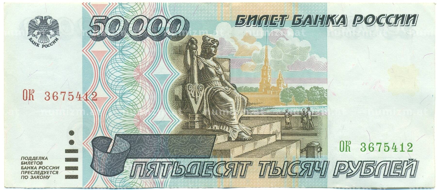 20.01.2025Интернет магазин «Нумизмат» предлагает приобрести 50000 рублей 1995 года.