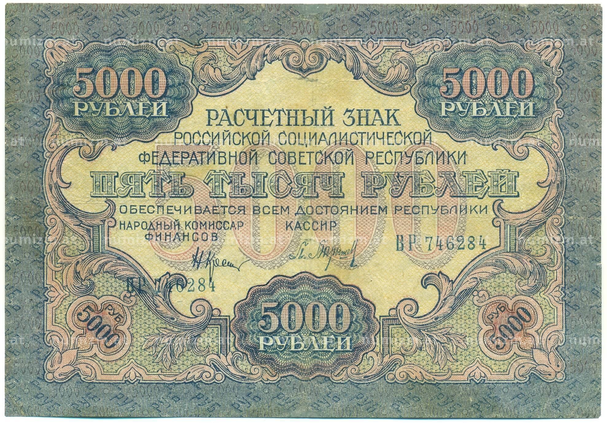20.01.2025Интернет магазин «Нумизмат» предлагает приобрести 5000 рублей 1919 года.