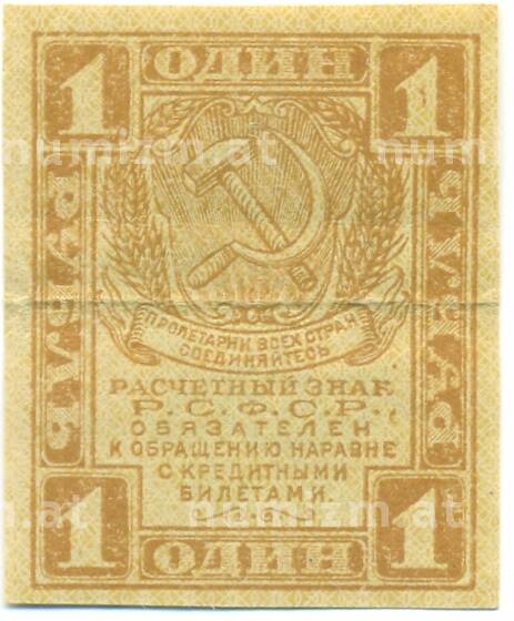 Банкнота 1 рубль 1919 года (Артикул: B1-12560): подробные характеристики, качественные фотографии в высоком разрешении, низкая цена.