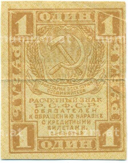 Банкнота 1 рубль 1919 года (Артикул: B1-12563): подробные характеристики, качественные фотографии в высоком разрешении, низкая цена.