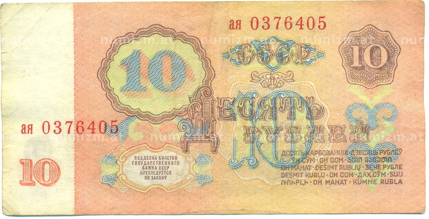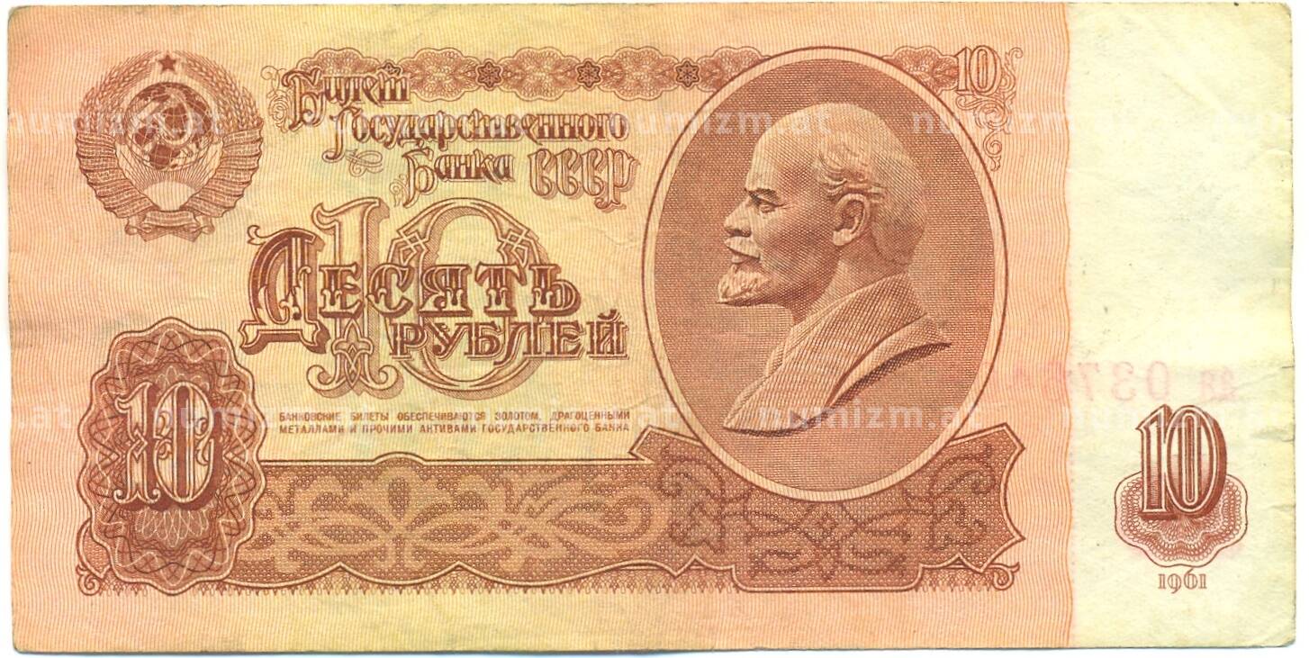Банкнота 10 рублей 1961 года (Артикул: B1-12573): подробные характеристики, качественные фотографии в высоком разрешении, низкая цена.