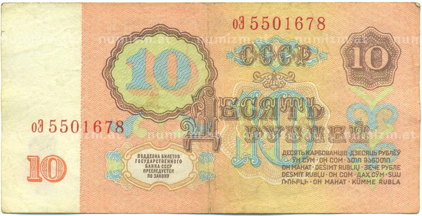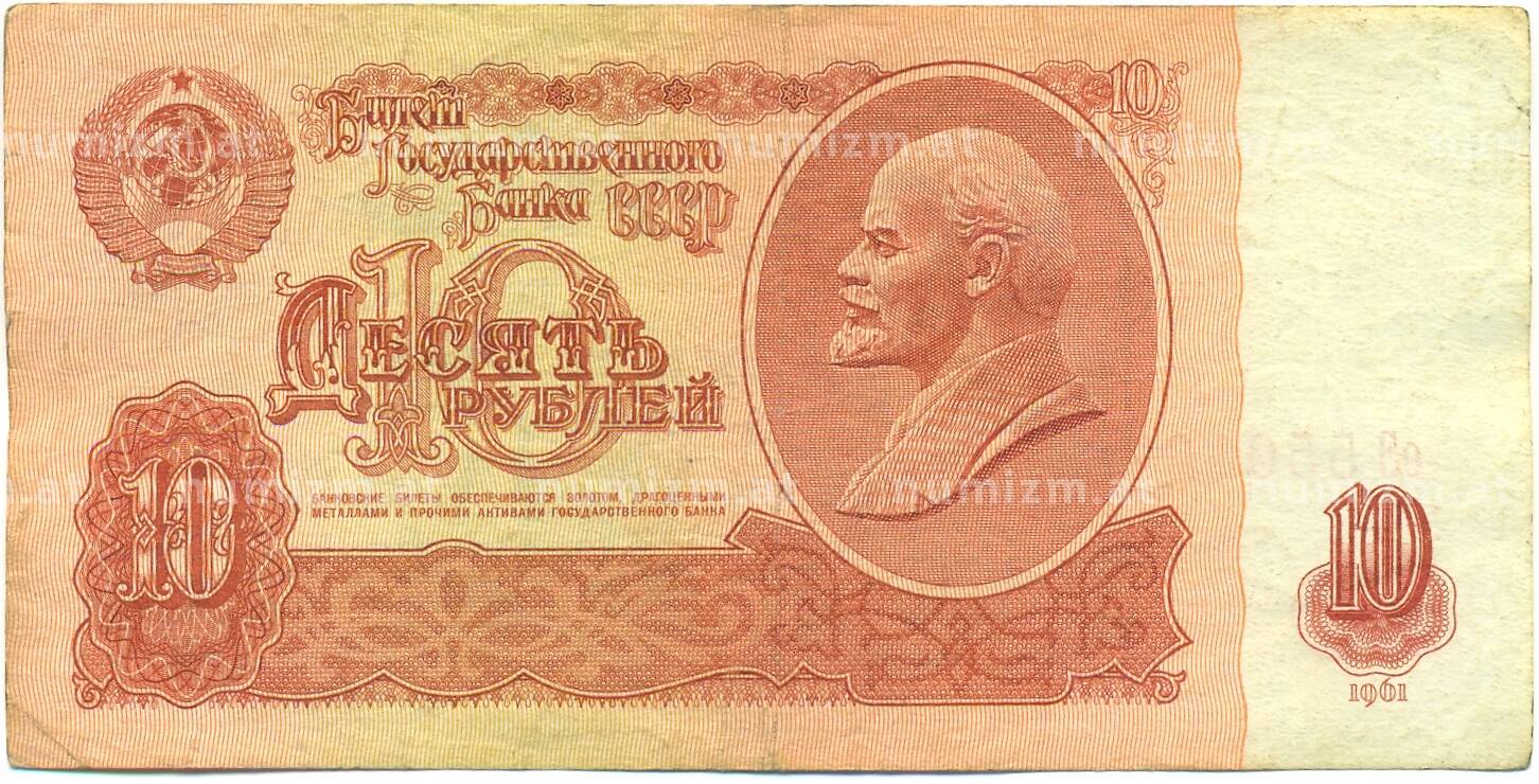 Банкнота 10 рублей 1961 года (Артикул: B1-12579): подробные характеристики, качественные фотографии в высоком разрешении, низкая цена.