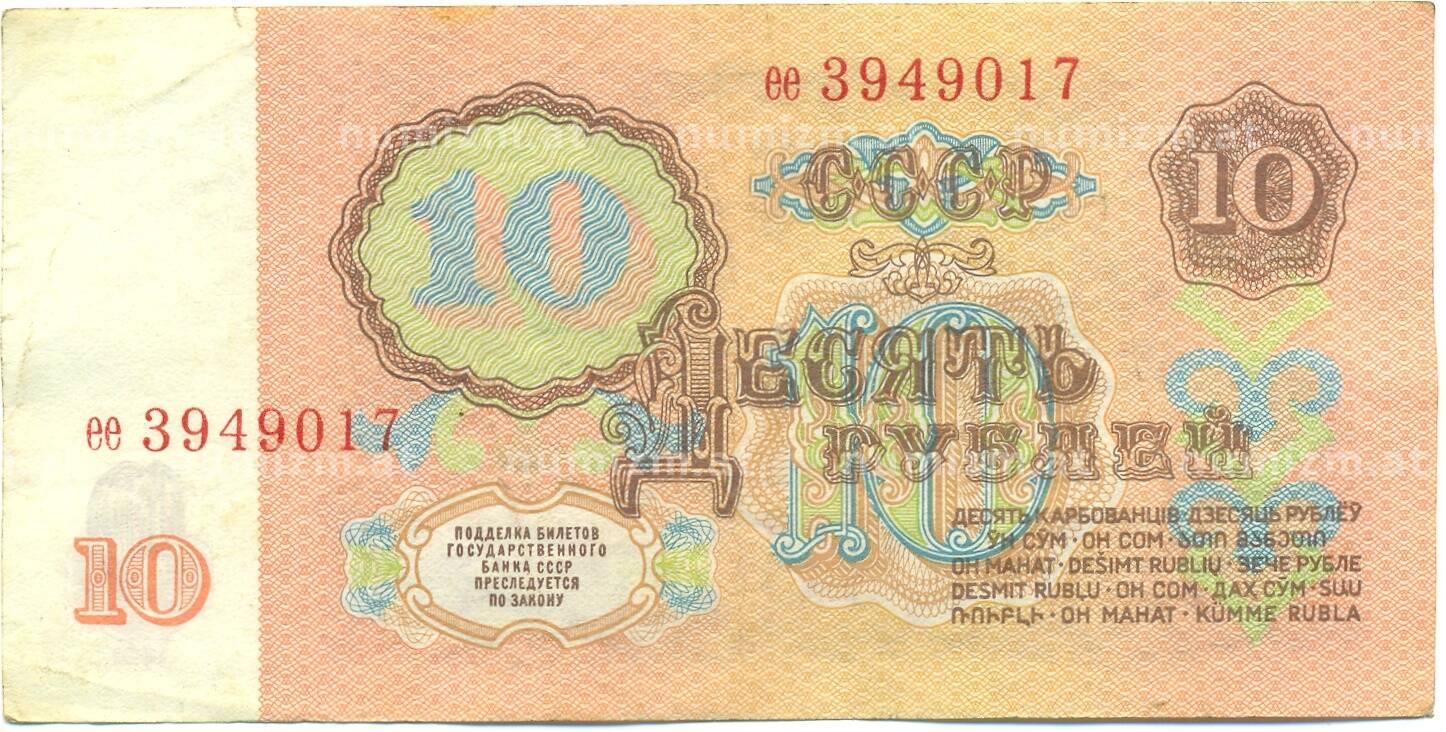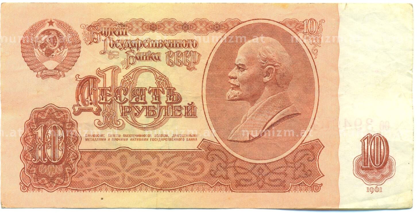Банкнота 10 рублей 1961 года (Артикул: B1-12584): подробные характеристики, качественные фотографии в высоком разрешении, низкая цена.