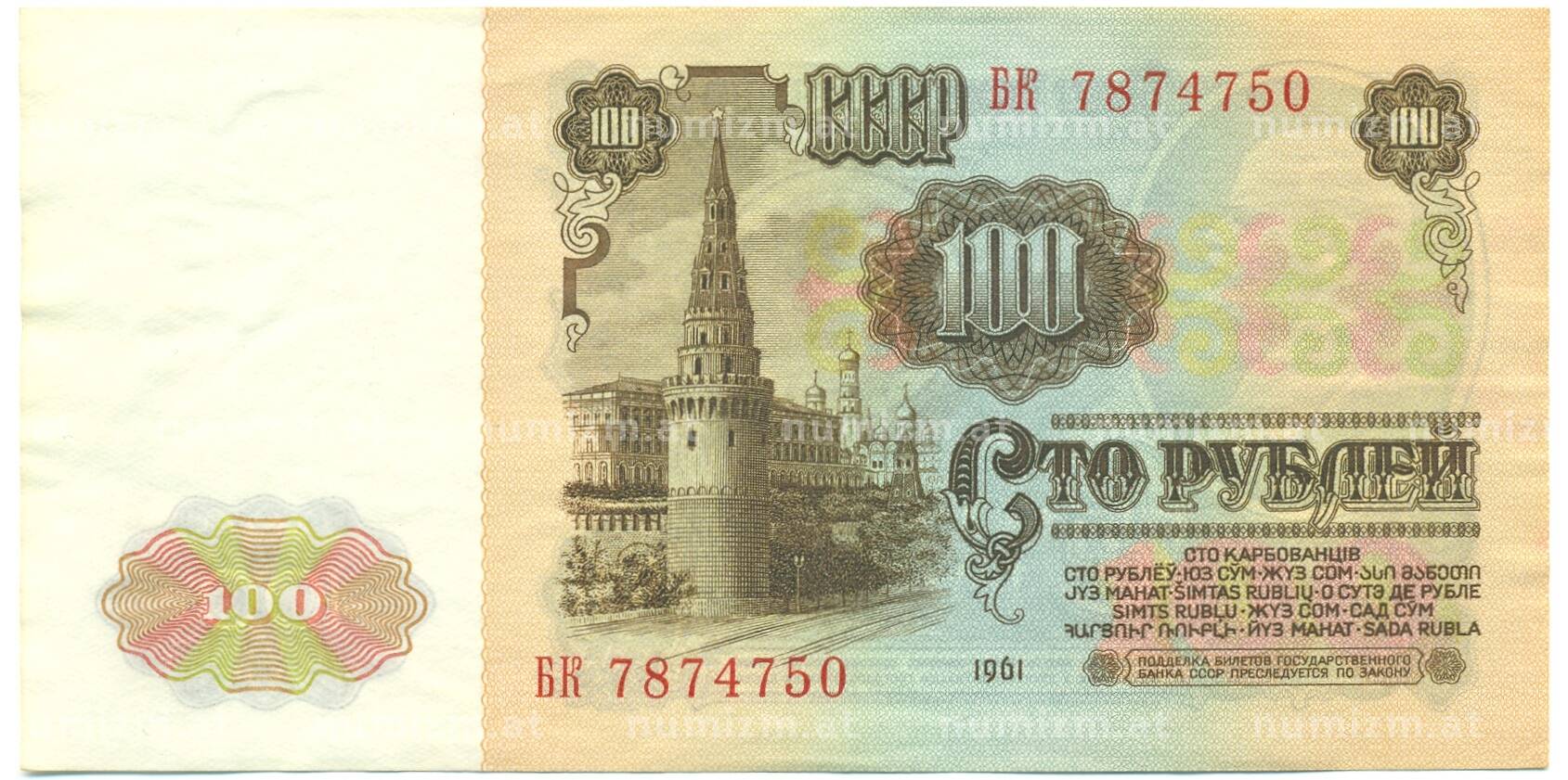 20.01.2025Интернет магазин «Нумизмат» предлагает приобрести 100 рублей 1961 года.