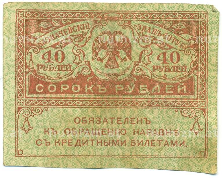 20.01.2025Интернет магазин «Нумизмат» предлагает приобрести 40 рублей 1917 года.