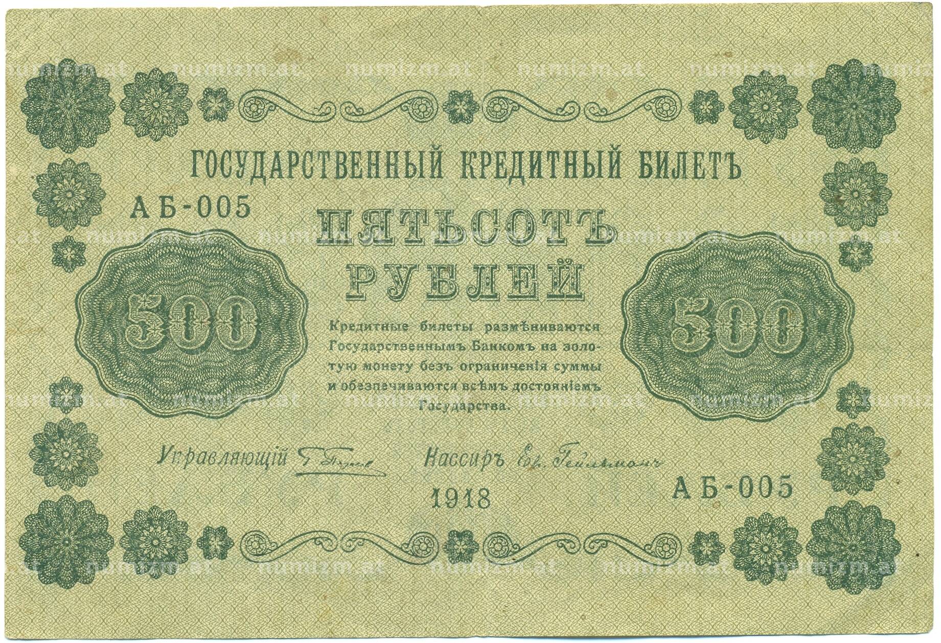 20.01.2025Интернет магазин «Нумизмат» предлагает приобрести 500 рублей 1918 года.