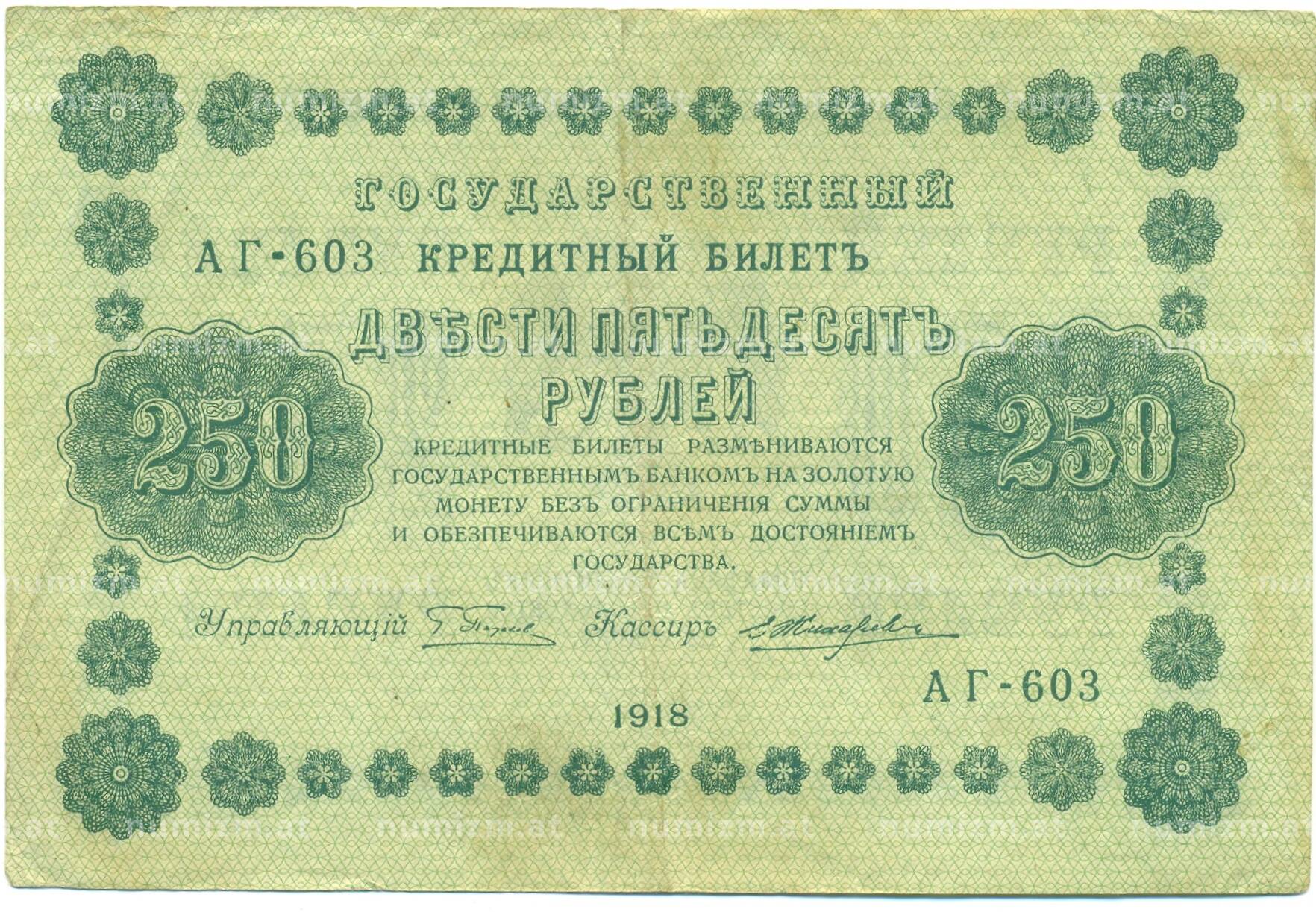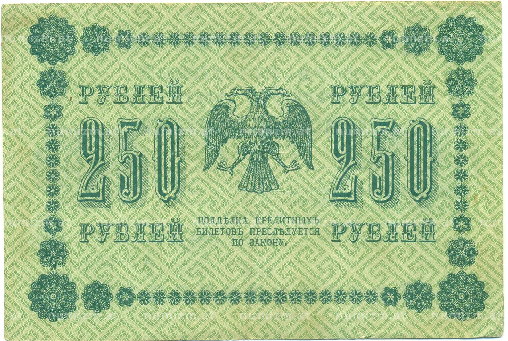 Банкнота 250 рублей 1918 года (Артикул: B1-12678): подробные характеристики, качественные фотографии в высоком разрешении, низкая цена.