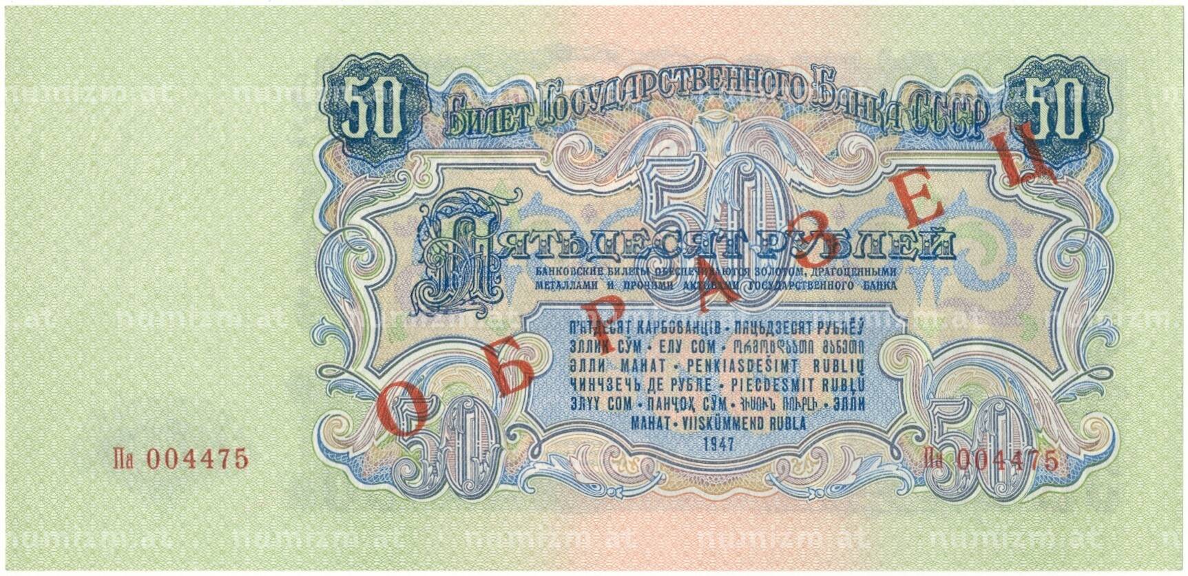 Купить 50 рублей 1947 года — 15 лент в гербе (Выпуск 1957 года) (ОБРАЗЕЦ) по привлекательной цене можно в нашем интернет-магазине — Вам достаточно оформить заказ на сайте. Все монеты, представленные в каталоге, находятся в наличии на нашем складе.