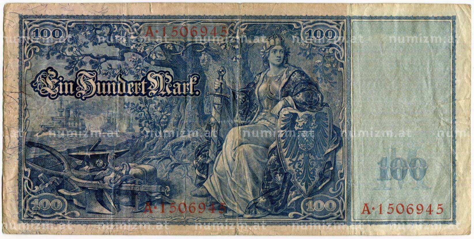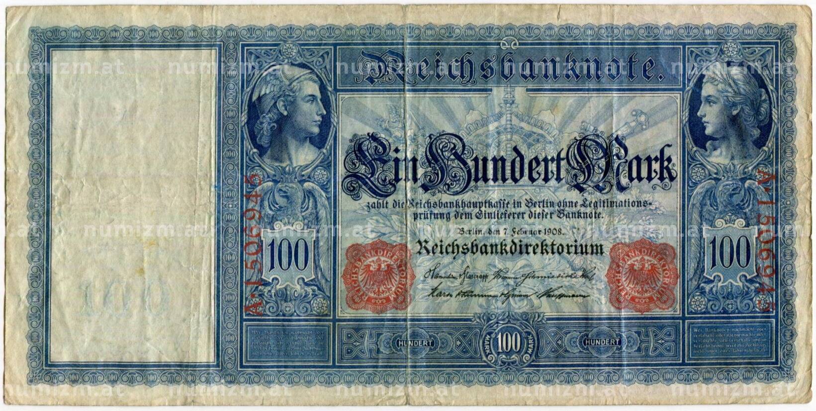 Банкнота 100 марок 1908 года Германия (Артикул: B2-10288): подробные характеристики, качественные фотографии в высоком разрешении, низкая цена.