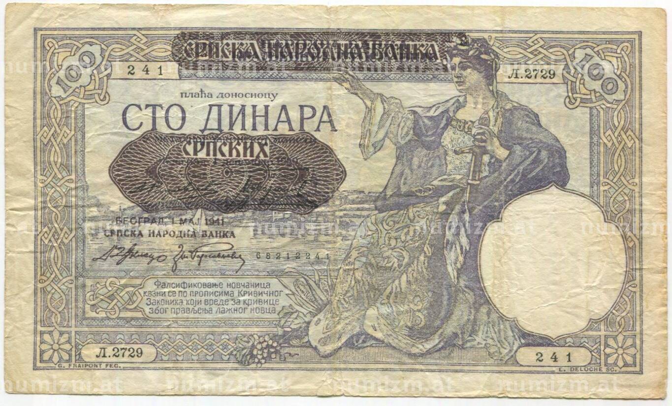Банкнота 100 динаров 1941 года Сербия [Артикул: B2-11480]