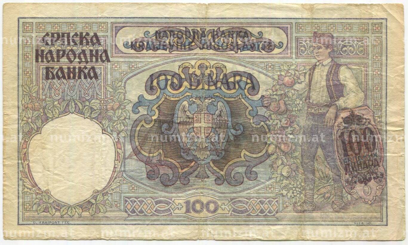 • Банкнота 100 динаров 1941 года Сербия (Артикул: B2-11480) — Фото №1 Банкнота 100 динаров 1941 года Сербия (Артикул: B2-11480) — Фото №2