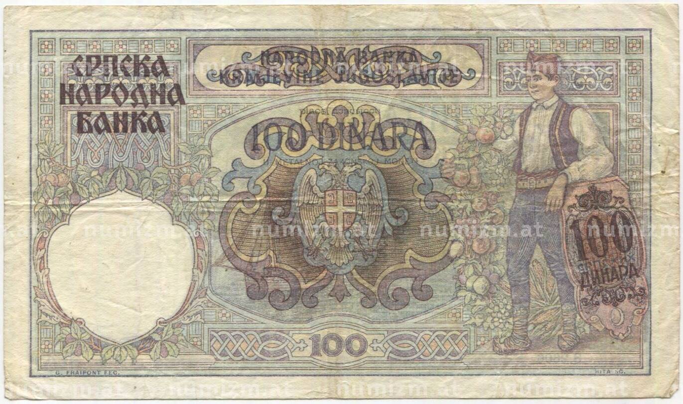 Банкнота 100 динаров 1941 года Сербия (Артикул: B2-11481): подробные характеристики, качественные фотографии в высоком разрешении, низкая цена.