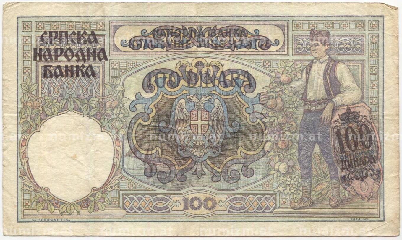 Банкнота 100 динаров 1941 года Сербия (Артикул: B2-11496): подробные характеристики, качественные фотографии в высоком разрешении, низкая цена.