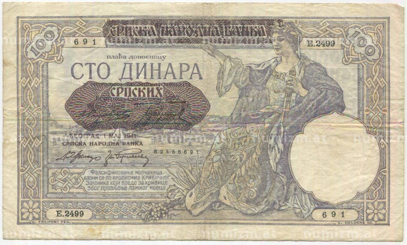 Банкнота 100 динаров 1941 года Сербия [Артикул: B2-11497]