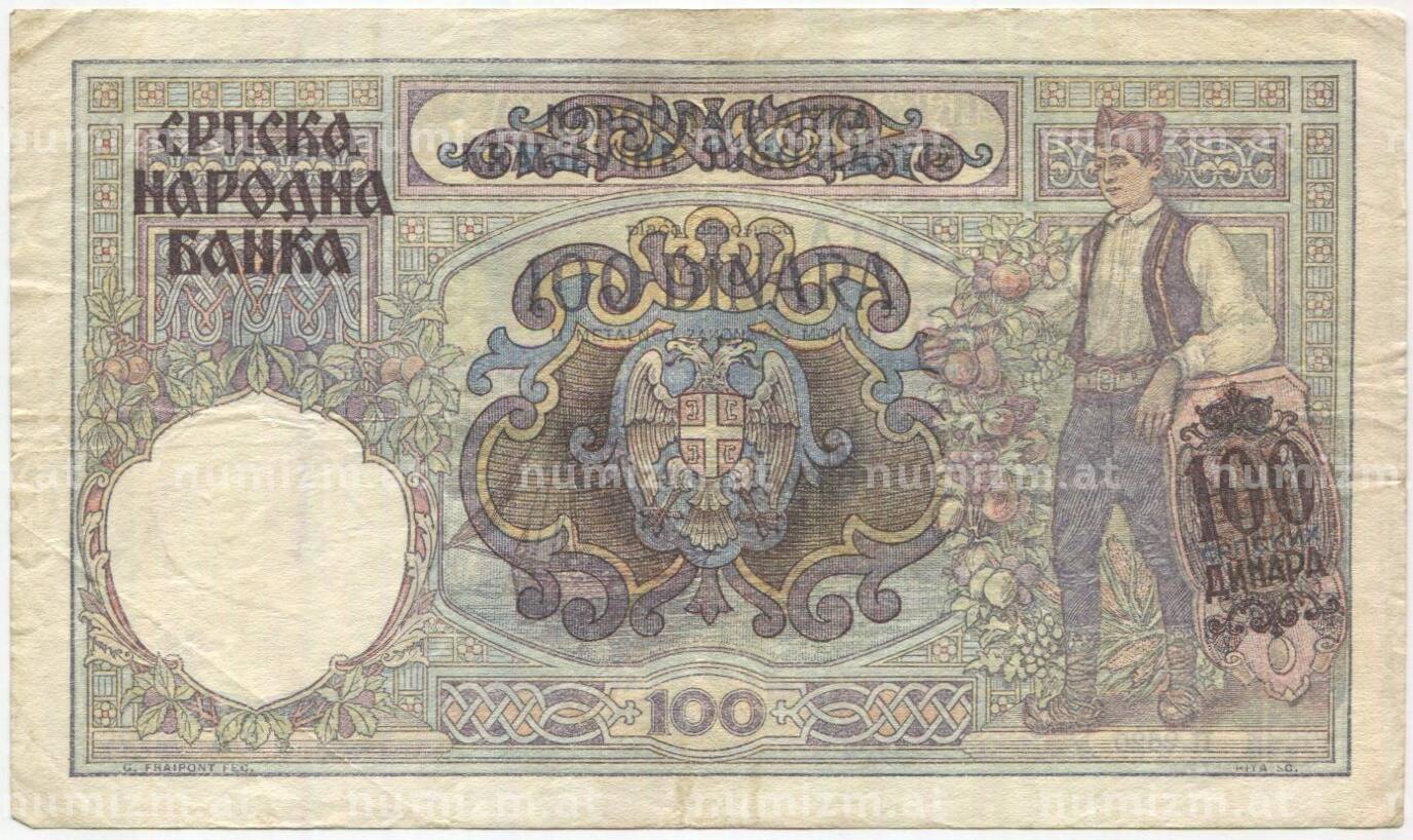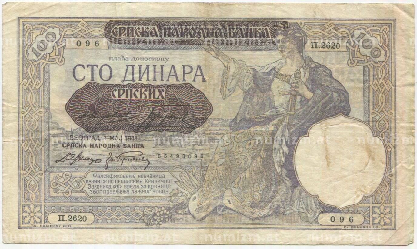 Банкнота 100 динаров 1941 года Сербия (Артикул: B2-11505): подробные характеристики, качественные фотографии в высоком разрешении, низкая цена.