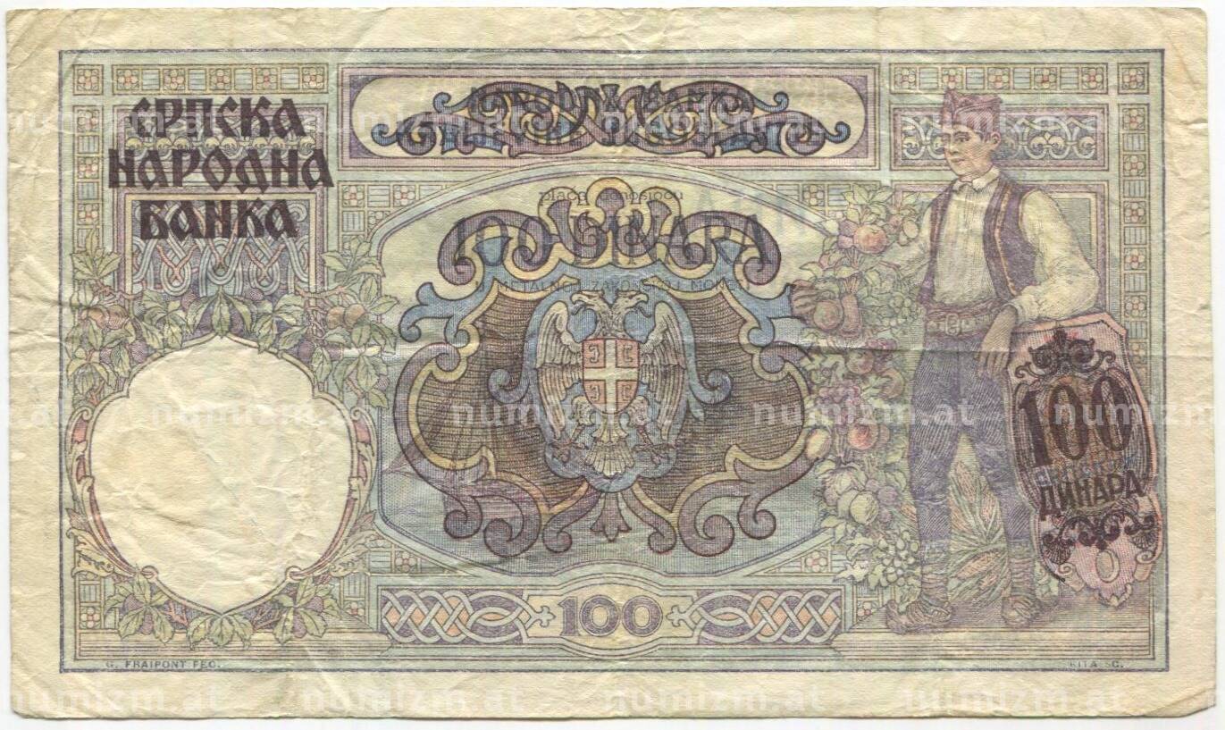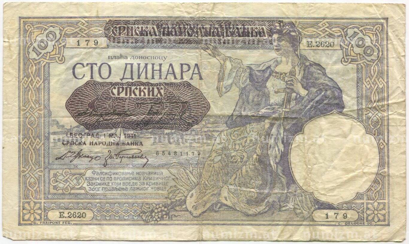 Банкнота 100 динаров 1941 года Сербия (Артикул: B2-11510): подробные характеристики, качественные фотографии в высоком разрешении, низкая цена.