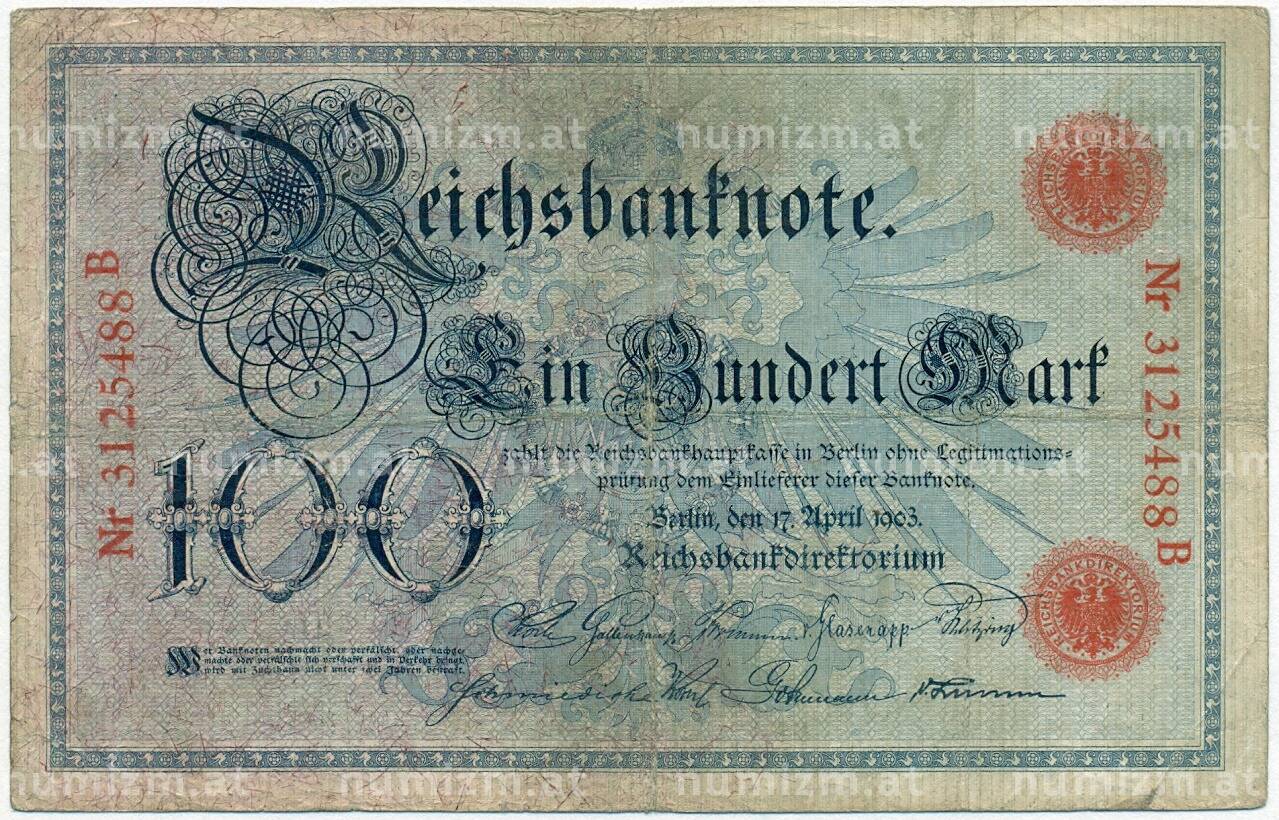 Банкнота 100 марок 1903 года Германия (Артикул: B2-12066): подробные характеристики, качественные фотографии в высоком разрешении, низкая цена.