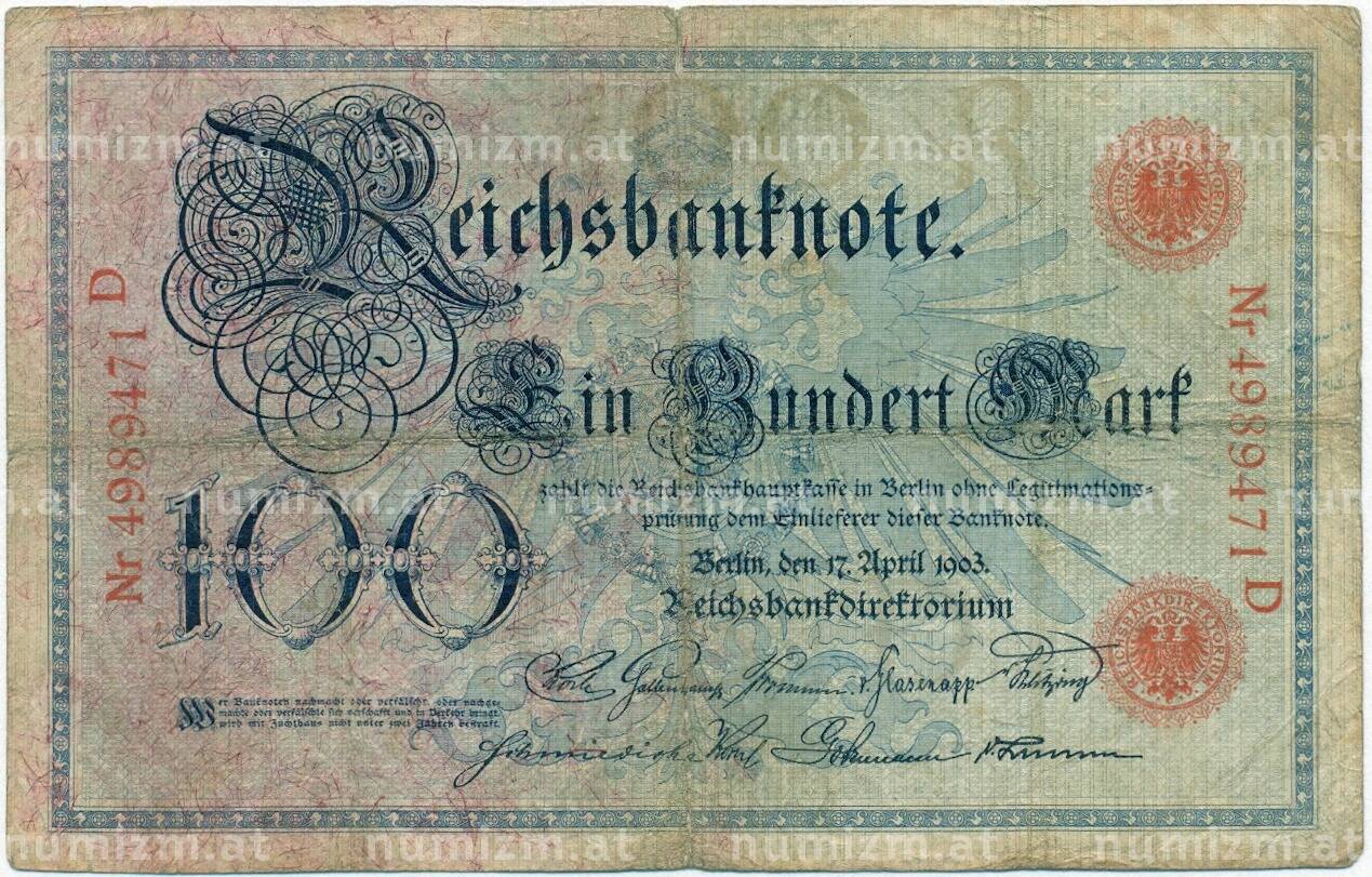 Банкнота 100 марок 1903 года Германия (Артикул: B2-12070): подробные характеристики, качественные фотографии в высоком разрешении, низкая цена.