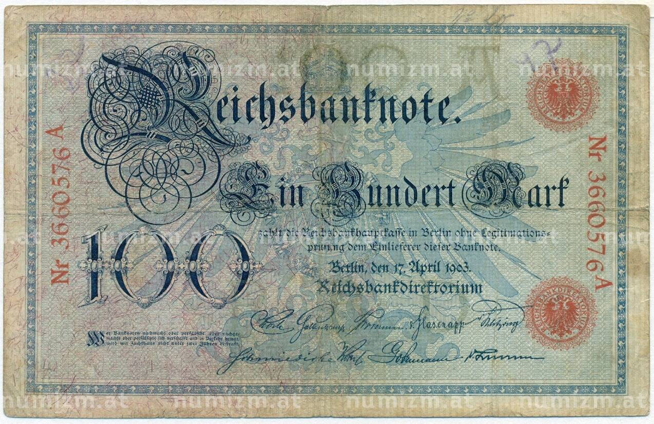 Банкнота 100 марок 1903 года Германия (Артикул: B2-12073): подробные характеристики, качественные фотографии в высоком разрешении, низкая цена.